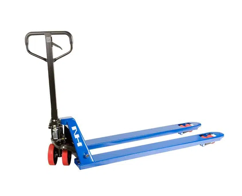 NH Palleløfter PLM2015 med lang gaffellængde er den optimale løsning for virksomheder, der har brug for at håndtere større eller længere paller effektivt og sikkert. Med fokus på ergonomi og pålidelighed leverer den både komfort og høj produktivitet.